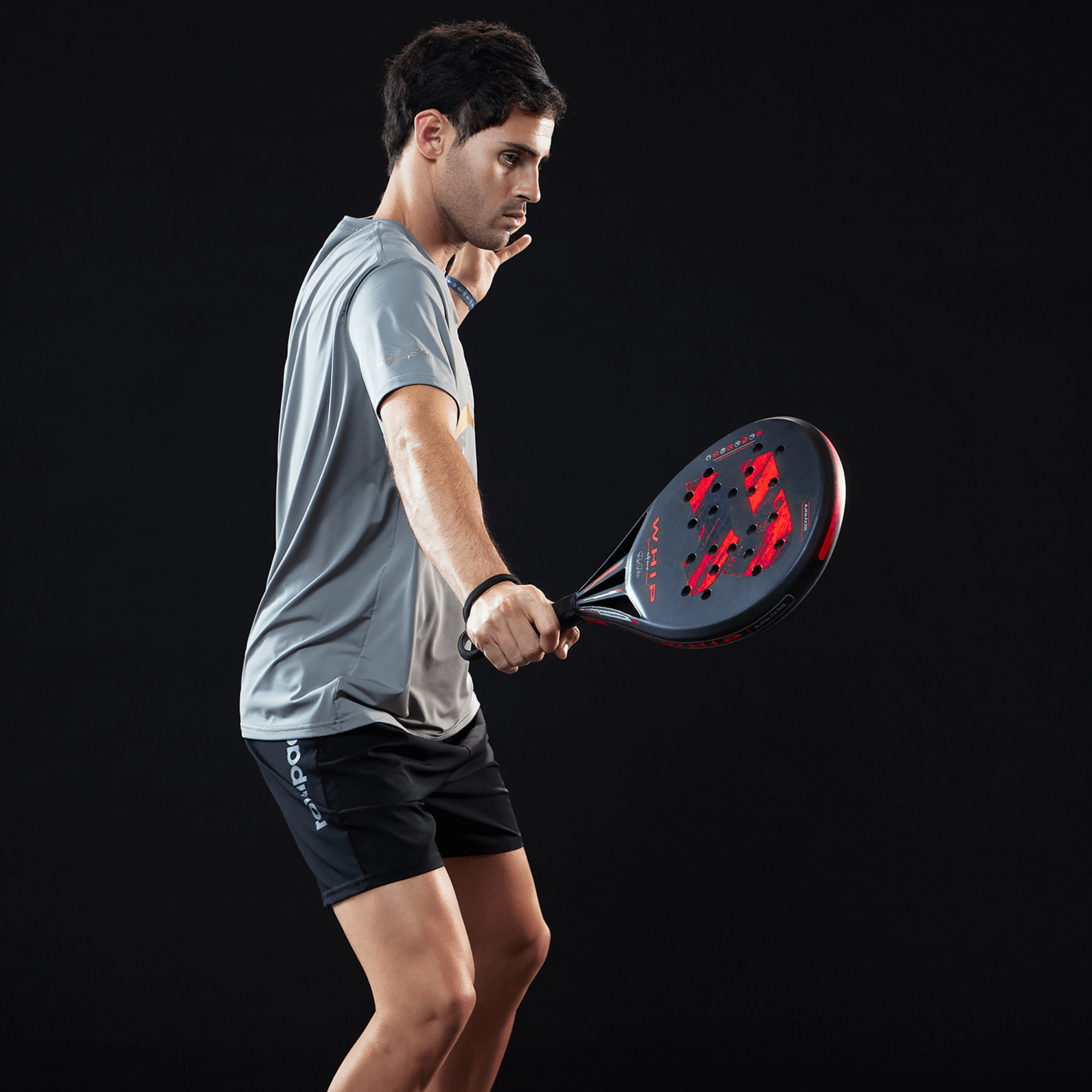 The Royal Padel Whip Extreme 2025 is one of the most arm-friendly rackets on the market, combining ultra-soft polyethylene core, dual shock dampeners, and a textured Fibertech face to deliver control, comfort, and point-ending power.